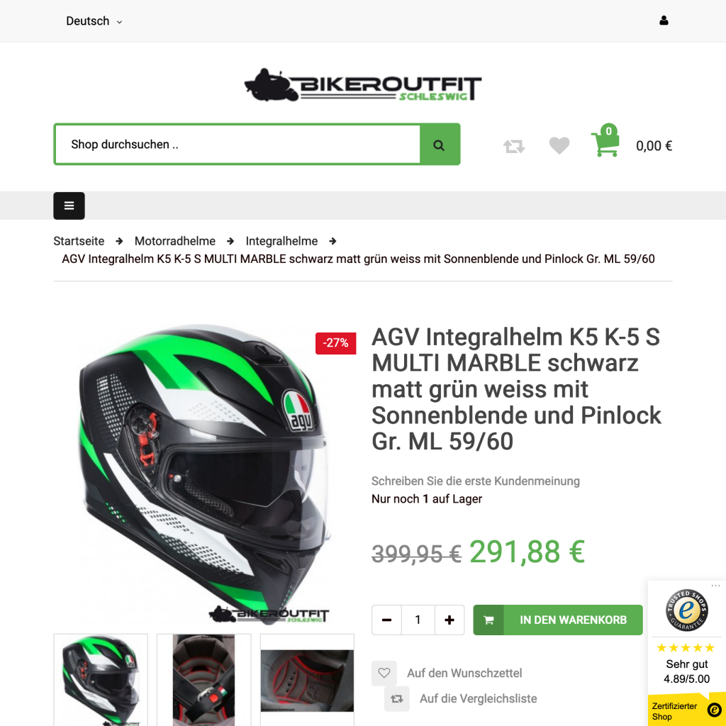 Der bisherige Onlineshop basiert auf Magento, wurde über mehrere Jahre von unserer Vorgänger-Agentur und uns betreut, erweitert, aktualisiert. Der Webshop präsentiert sich dreisprachig, nämlich deutsch, dänisch & englisch und bietet über 15.000 Artikel rund ums Motorradfahren an.