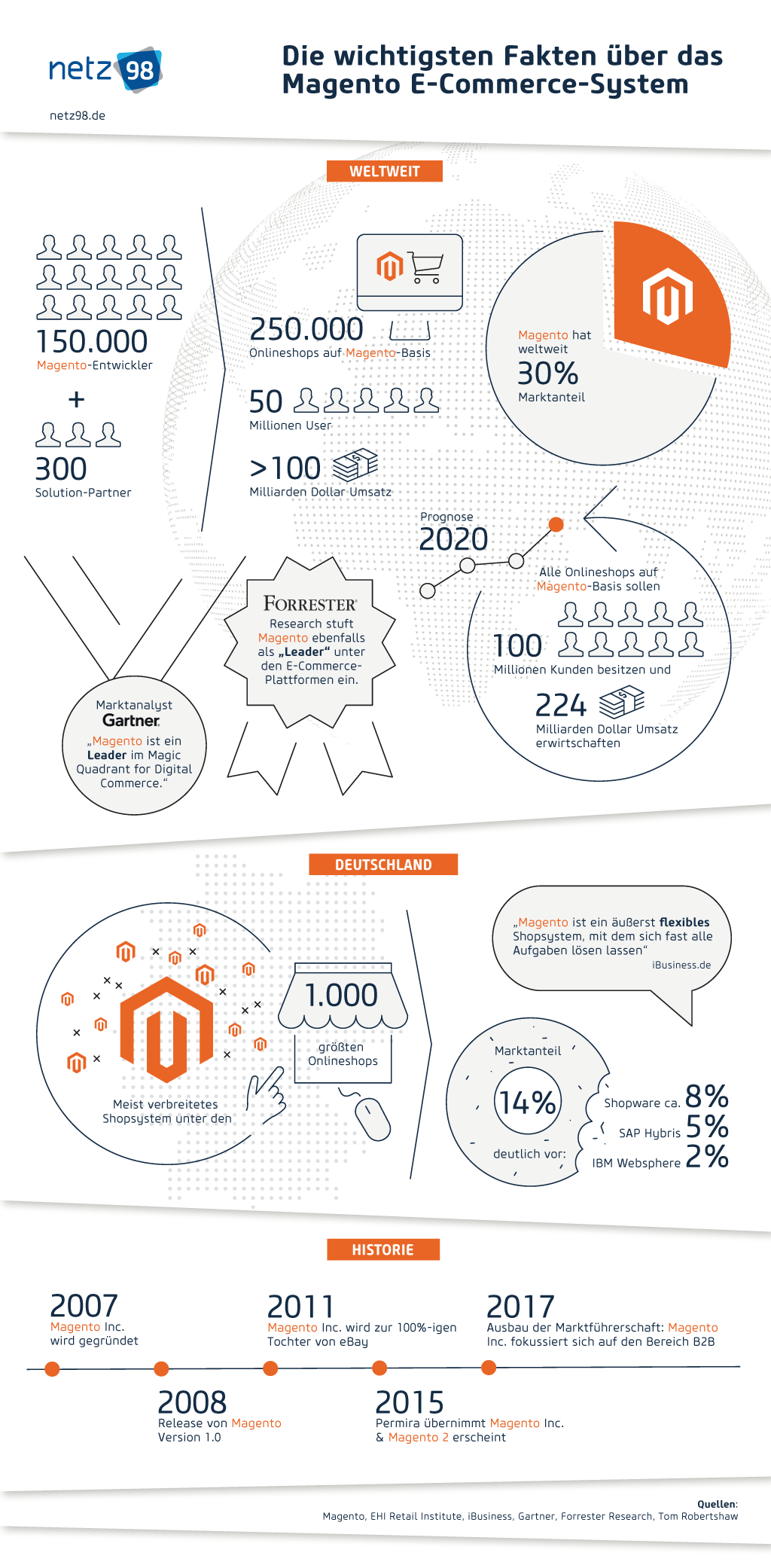Magento ist eine E-Commerce-Plattform, die keine Wünsche offen lässt. Aber gerade für Einsteiger im E-Commerce ist es eine große Hilfe eine Agentur neben sich zu haben, die den Prozess von der Planung bis zur Eröffung ihres Onlineshops betreut. Schon kurz nach seinem Erscheinen hat sich Magento einen festen Platz im Online-Geschäft erobert, und nicht ohne Grund: Magento bietet bereits in der Basisversion einen Funktionsumfang, wie in bisher nur sehr teure Enterprise-Systeme bieten konnten.